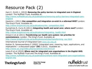 The Evidence Base For Integrated Care